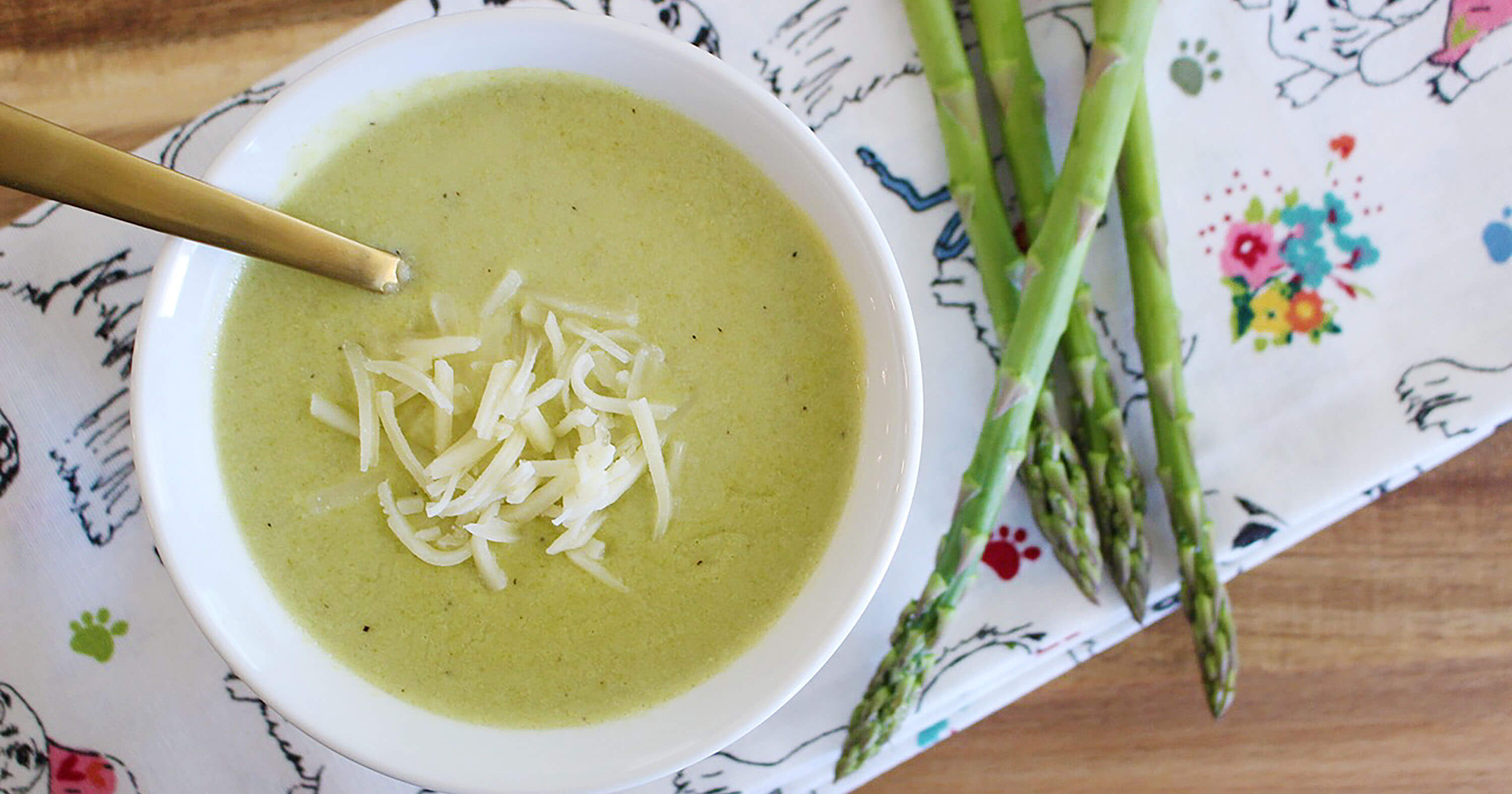 - Cook’s Note: I like to top my Asparagus soup with different types of Cacique cheeses. My favorites are crumbled Queso Panela or shredded Cacique Oaxaca, but you can definitely top with any Cacique cheese you prefer.