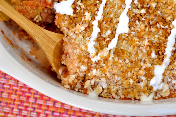 - Bake at 375 degrees F for 35-40 minutes, or until cheese has melted and the top of the Parmigiana has browned. Drizzle Crema Mexicana over the top of the dish and serve.