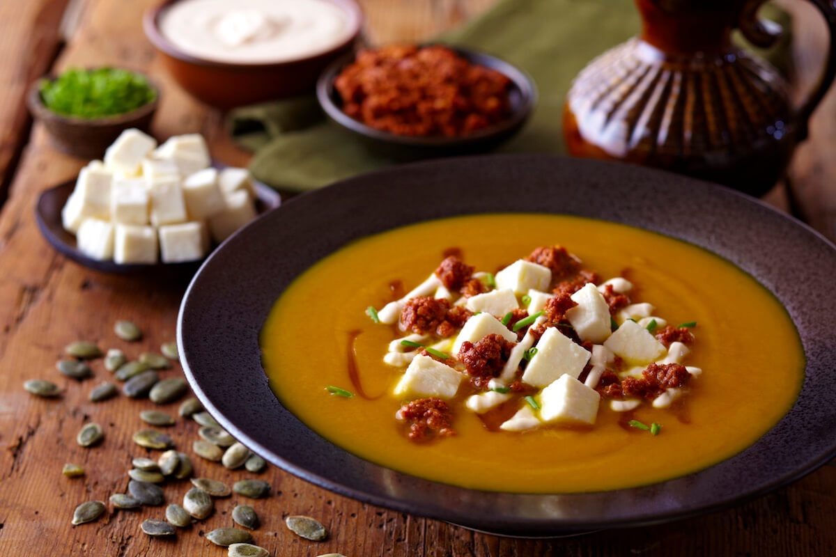 Butternut Squash Soup with Chorizo and Agave Syrup