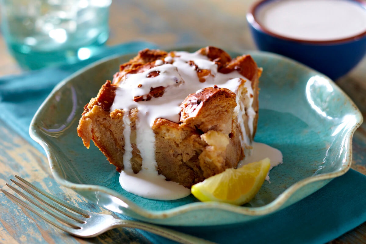 - For coffee & toffee crema: Melt butter in small sauce pan. Add crema and brown sugar. Bring to a boil and reduce to a simmer. Add vanilla and coffee liqueur. Stir until well blended and allow it to thicken for 5 minutes, stirring occasionally. Remove from the heat and drizzle lightly over the bread pudding. Serve immediately.
