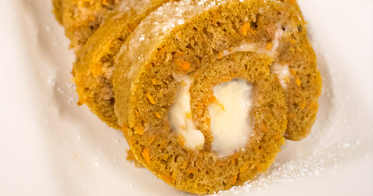 - Remove and unwrap the carrot roll and transfer it to your serving dish. Lightly dust the roll on all sides with powdered sugar, if you would like. Then slice* and serve.