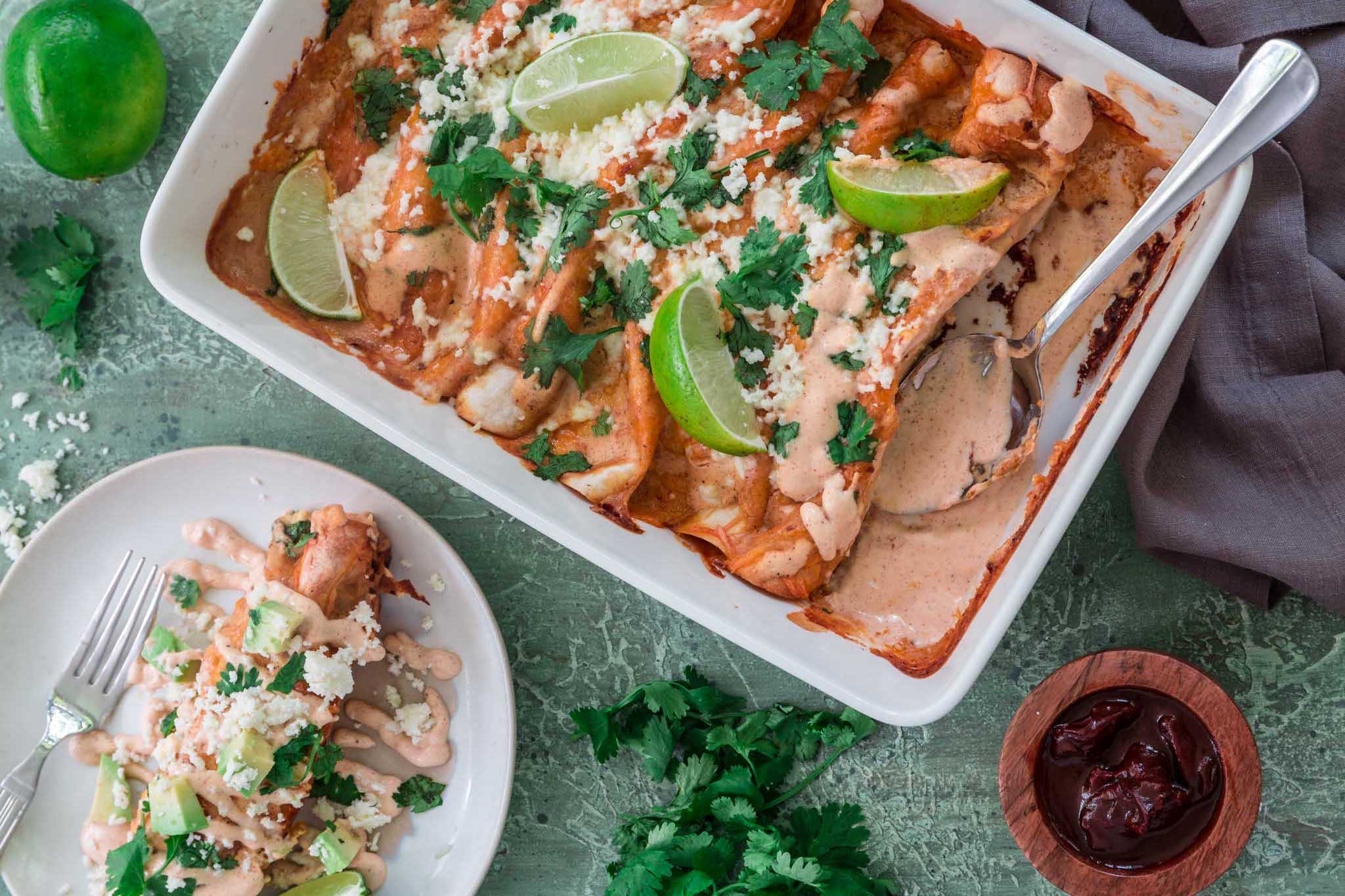 Chicken and Chorizo Enchiladas with Chipotle Crema Sauce