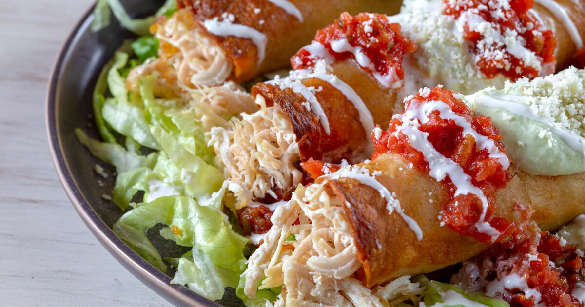 Chicken Taquitos with Avocado Crema and Cacique Salsa
