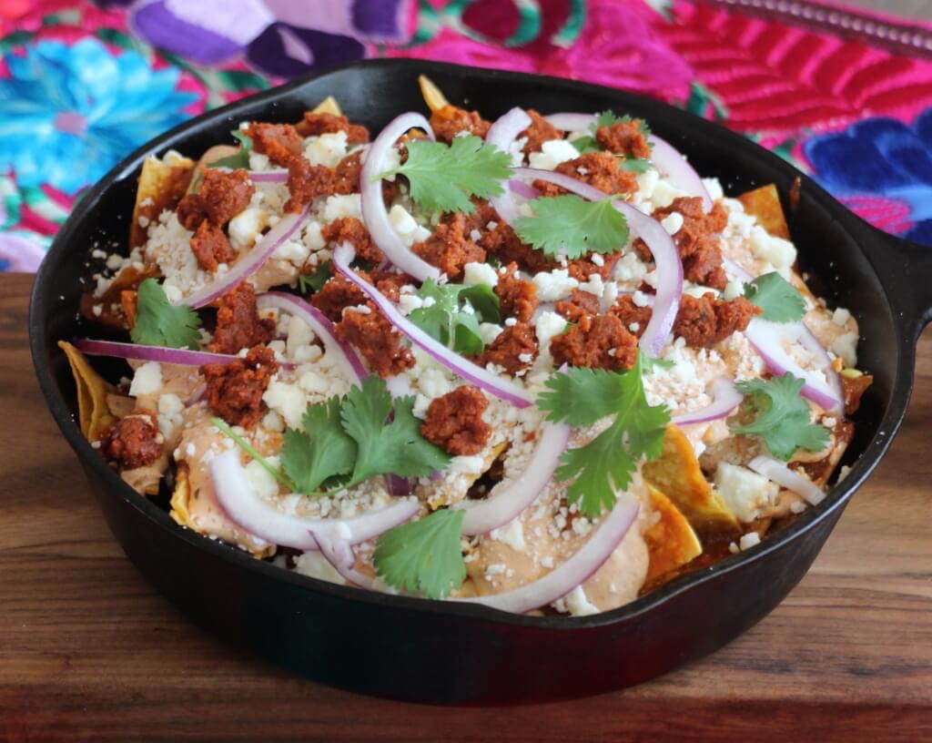Chilaquiles with Beef Chorizo and Spicy Chipotle Crema