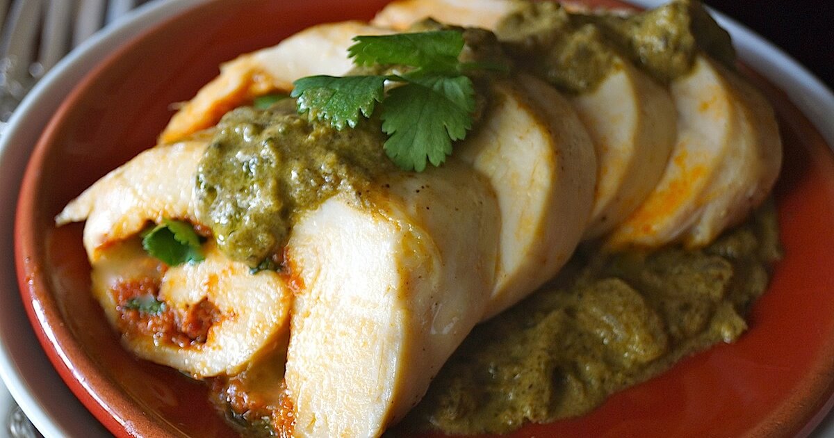 Chorizo and Queso Chicken Roulade with Roasted Poblano Crema