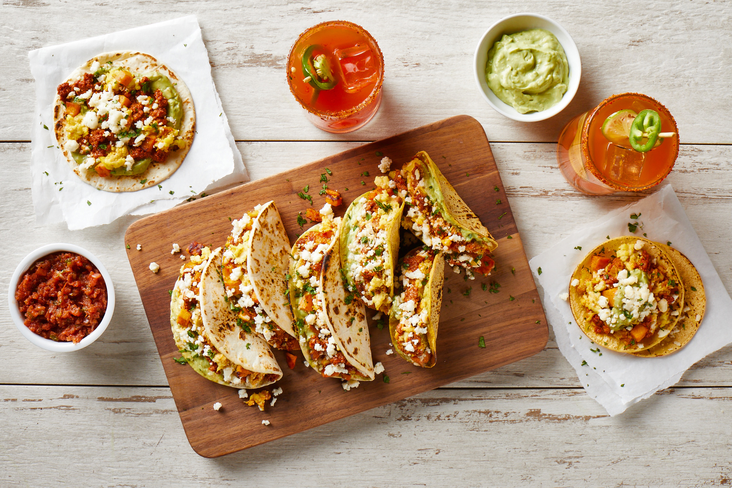 - To assemble the tacos, spread a spoonful of avocado-lime crema over the tortillas. Fill with roasted sweet potatoes and the chorizo-egg mixture, taking care not to overstuff. Garnish with a heaping spoonful of crumbled Cacique Ranchero Queso Fresco, as well as Cacique Homestyle Salsa and fresh cilantro (if using).
