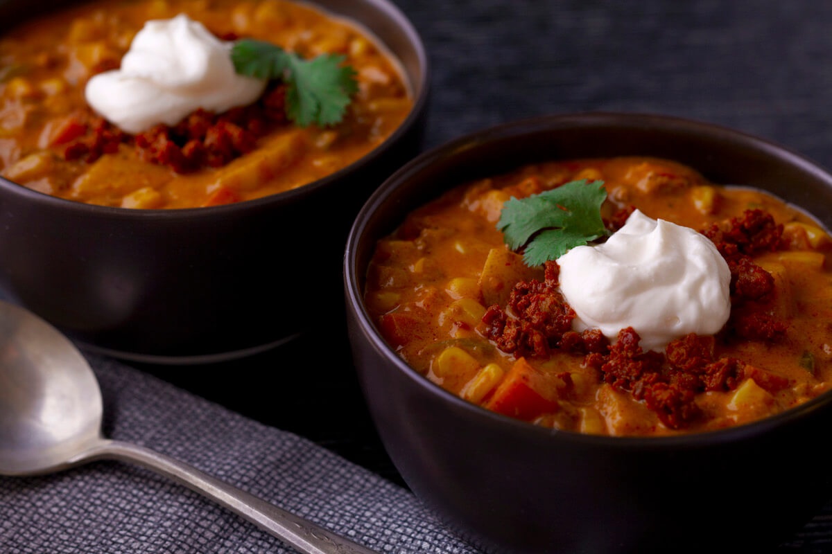 - Turn off the heat, then incorporate the milk and the crema with the soup. You may garnish this delicious chili with cilantro sprigs and a dollop of Crema Mexicana. Serve immediately.