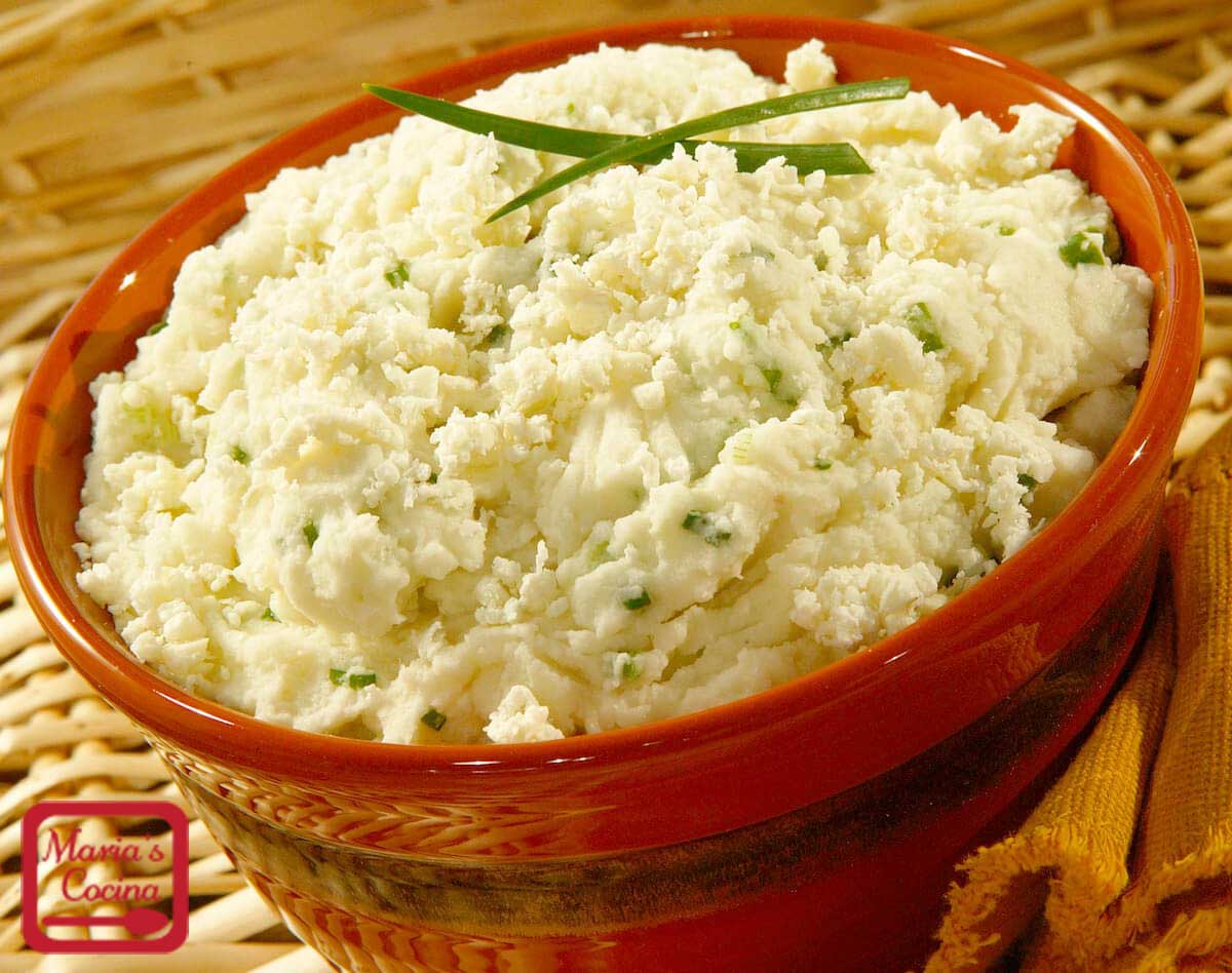 - Mash potatoes with a potato masher. Mix green onions with Crema Salvadorena® and cheese then incorporate into the mashed potatoes. If necessary, beat in only enough milk to make fluffy. Season to taste with salt and pepper.