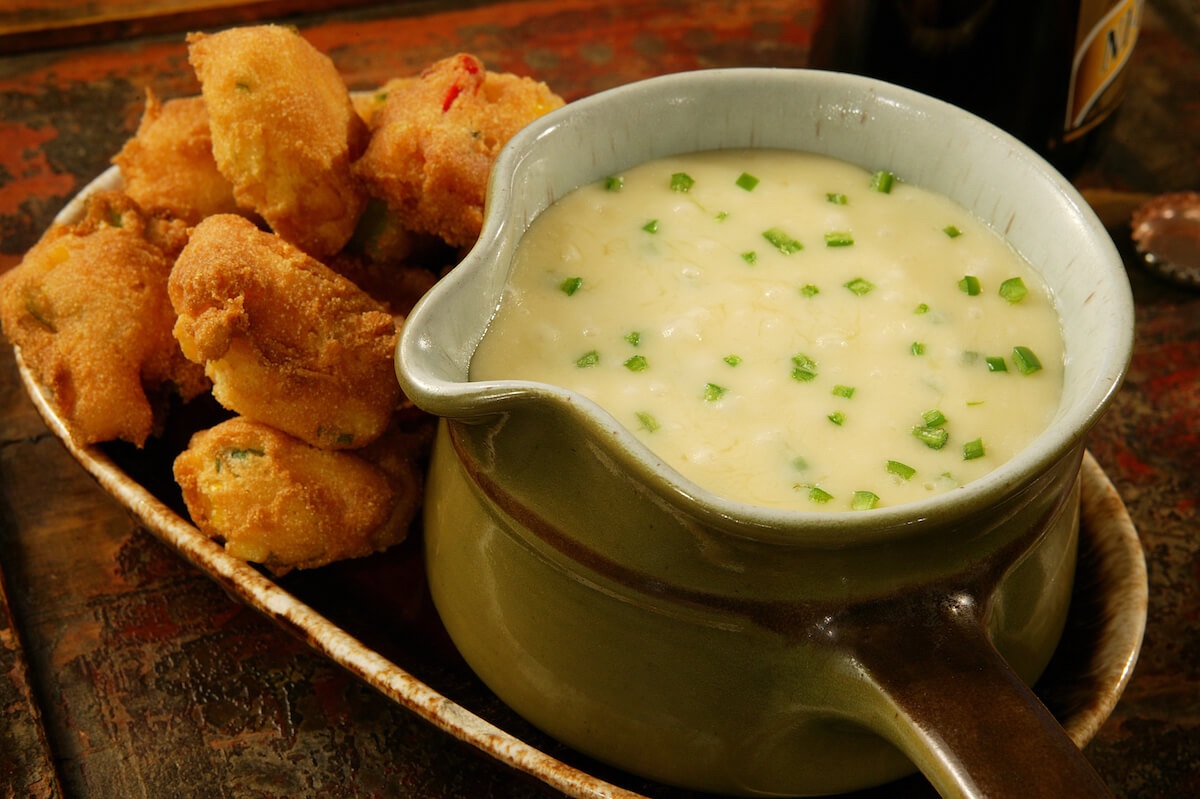 Dark Beer Queso Fundido with Jalapeño Corn Fritters