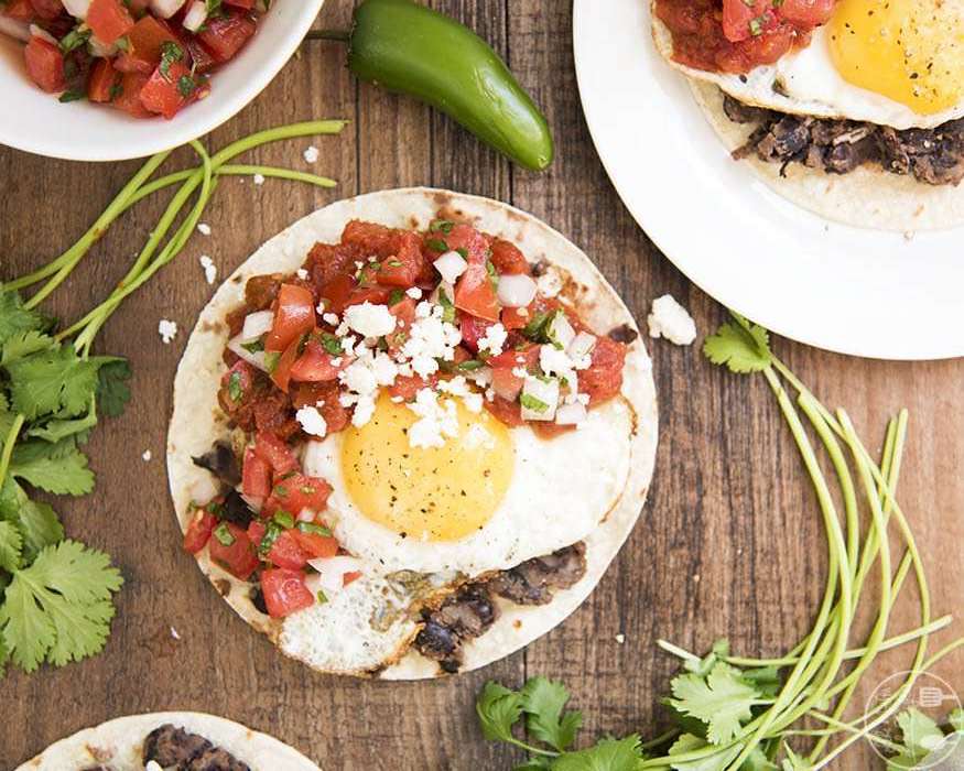 - For the Huevos Rancheros: Add salsa to saute pan and heat for a couple minutes until it's warmed throughout and thickened a little. Set aside. In another skillet add 1/2 tsp of olive oil and heat over medium. Carefully crack in one egg and cook until the white is set and the yolk is cooked to desired doneness. Spread black bean mixture over tortilla. Top with egg, warmed salsa, a little pico de gallo, about 1/2 TBS of cotija cheese, and sprinkle with salt and pepper. Serve immediately. (Repeat cooking additional eggs, each in new olive oil)