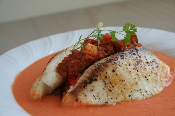 Pan Seared Tilapia with Pork Chorizo & Tomato Cream Sauce