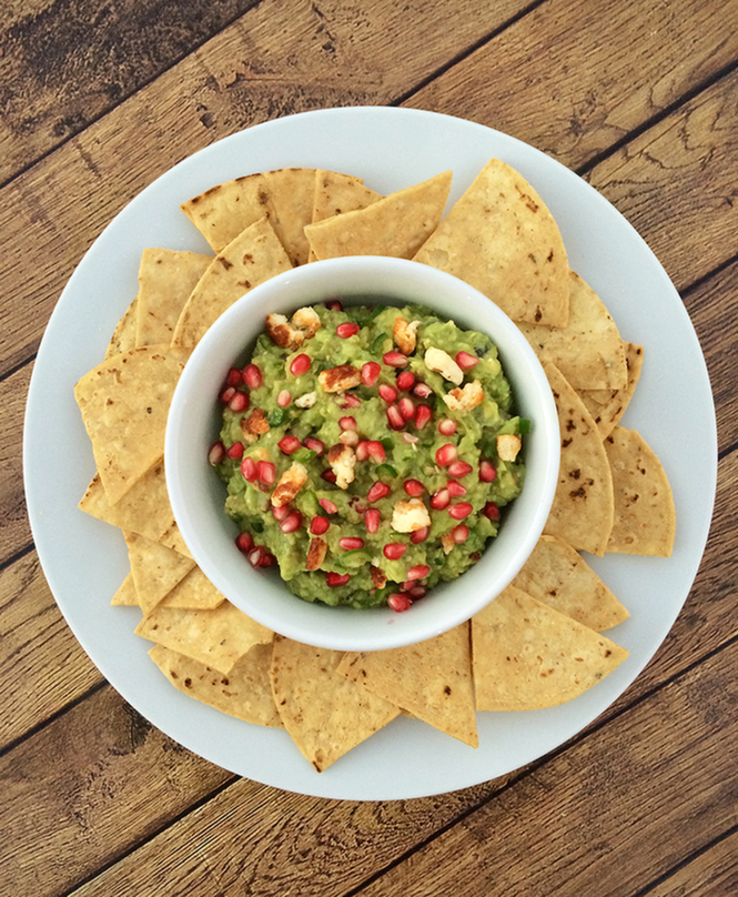 Pomegranate Guacamole with Cotija Croutons
