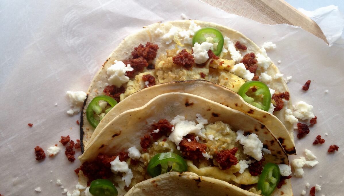 Quinoa & Queso Breakfast Tacos With Chorizo Crumble