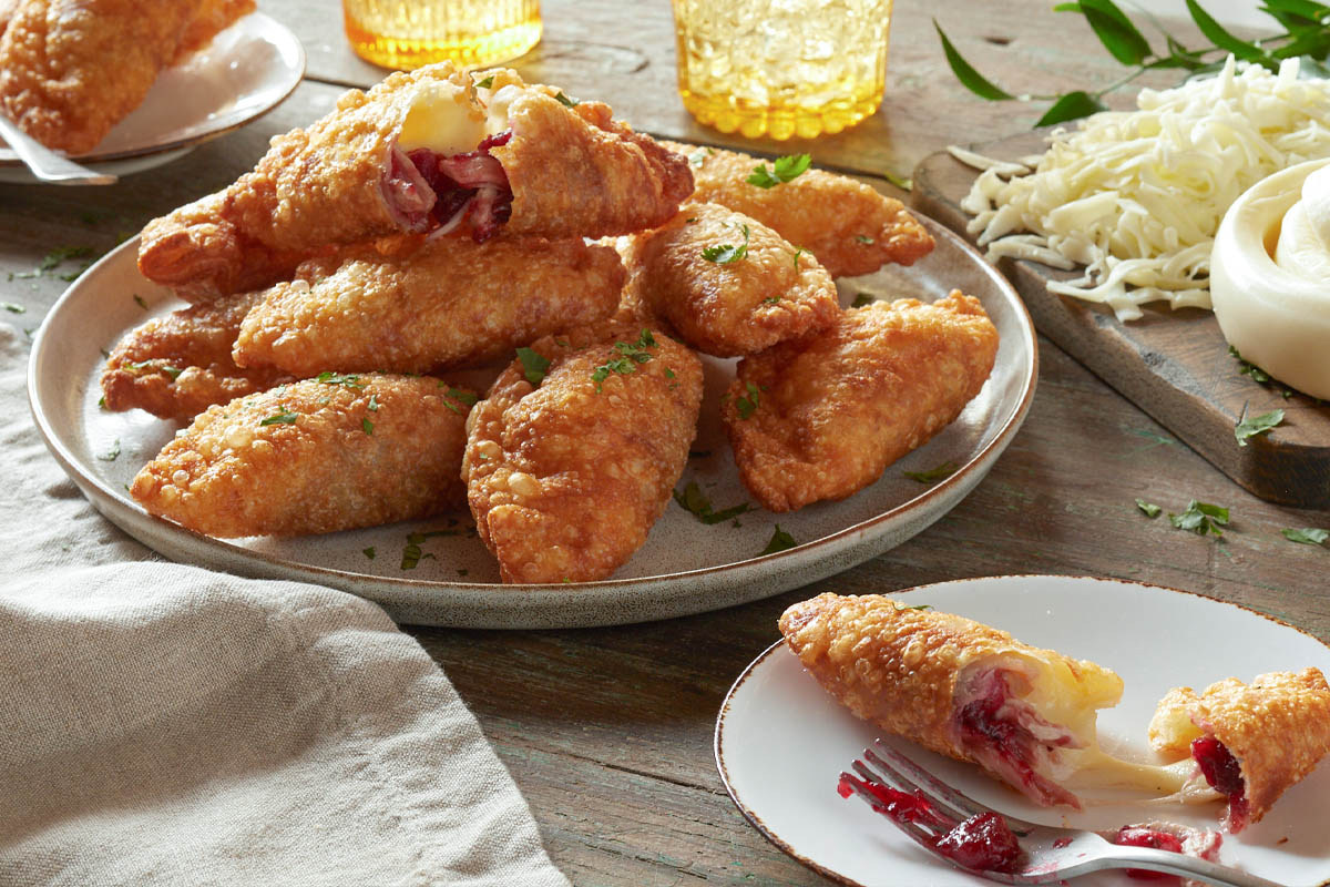 - Fold the discs in half and seal them with a fork by pressing down the edges. Fry in hot oil for 1 to 2 minutes on each side until golden brown allowing cheese to melt.