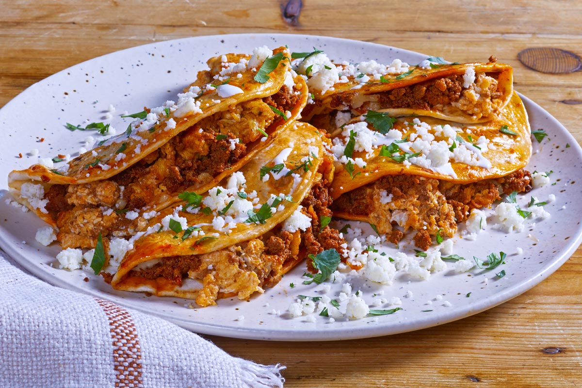 - Serve tacos topped with crumbled Queso Fresco, Crema Mexicana & cilantro & enjoy!